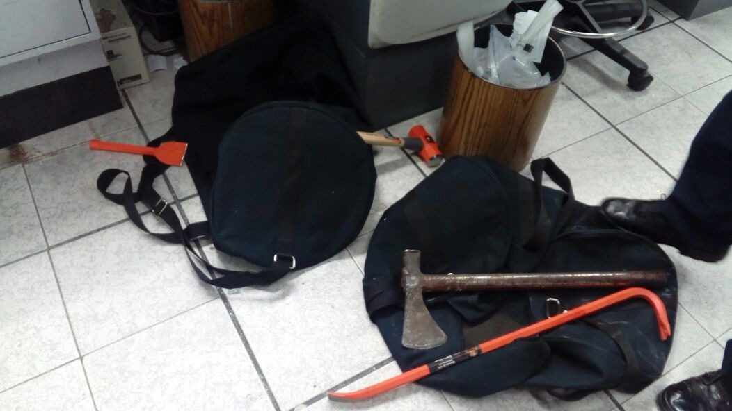 «Guardias de seguridad de una plaza comercial aledaña denunciando a seis sujetos vestidos de negro y con armas largas ingresando al banco, luego de romper un cristal del mismo y forzar las cerraduras», informó la policía municipal.