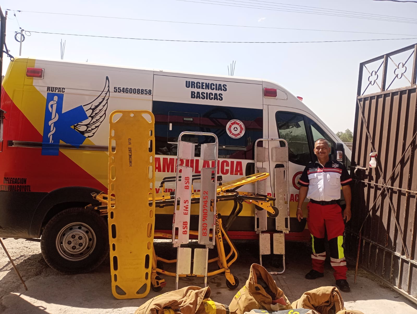 NEZAHUALCÓYOTL (10 MARZO 2025).- La Fundación 911 A.C., de #CiudadAcuña, realizó un donativo de dos camillas, una camilla rígida y un carro camilla, además equipo de bomberos a la agrupación de rescate y urgencias médicas RUPAC, a cargo del director y fundador Juan Manuel Padilla Ramos.