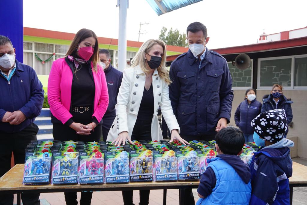 HUIXQUILUCAN (10 ENERO 2022). – Al entregar juguetes a niñas y niños que acuden a escuelas de Huixquilucan por el Día de Reyes, la presidenta municipal, Romina Contreras Carrasco, aseguró que mantendrá un gobierno 24/7 donde se privilegie la atención de todos los grupos de la población, con el objetivo de que este municipio siga avanzando y se siga consolidando como el número uno del Estado de México y del país.
