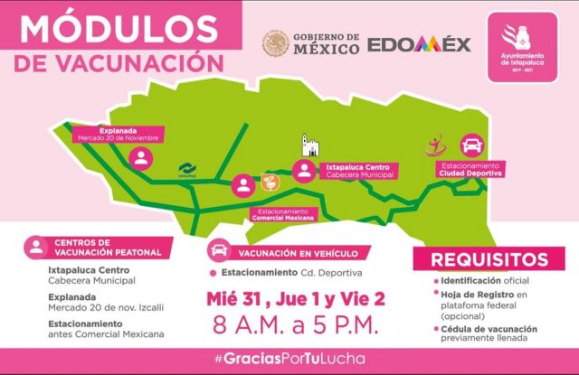 Por otra parte, para la auto vacunación, se habilitará la nueva Ciudad Deportiva de Ixtapaluca, en donde las personas podrán recibir la aplicación sin descender de sus vehículos.