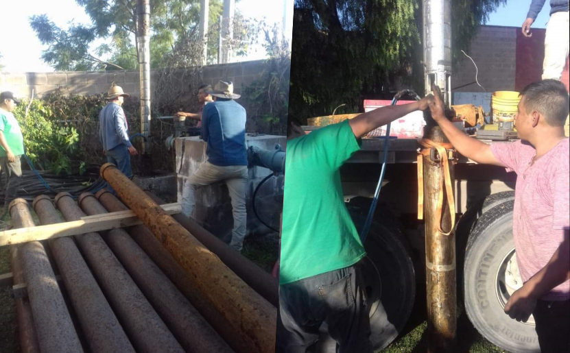 El director de gobierno, Miguel Ángel López Escorcia, estuvo presente durante las revisiones técnicas y mientras el personal operativo hidráulico realizó el cambio de la bomba sumergible a una profundidad de 110m con tubos de 6 pulgadas.