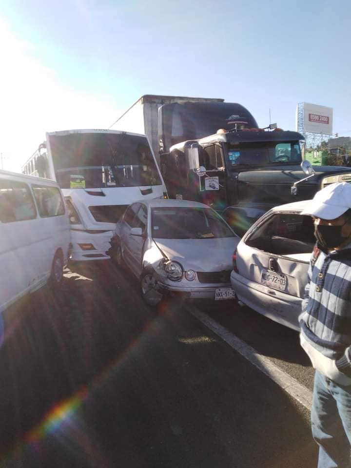 LA PAZ (11 FEBRERO 2022).- Esta mañana se registró un múltiple choque sobre la autopista México-Puebla dejando a varias personas lesionadas y la circulación totalmente parada por el cierre de todos los carriles laterales con dirección a la Ciudad de México.