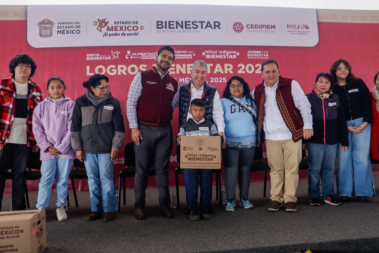 NEZAHUALCÓYOTL (10 DICIEMBRE 2025).- El Presidente Municipal de Nezahualcóyotl, Adolfo Cerqueda Rebollo y el Secretario de Bienestar del Estado de México, Juan Carlos González Romero, encabezaron el encuentro estatal Logros Bienestar 2025, en el que el Gobierno del Estado de México presentó avances y entregó simbólicamente programas sociales que tienen como finalidad fortalecer la economía familiar, reducir desigualdades y garantizar derechos a sectores prioritarios.