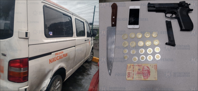 Con estas declaraciones, se realizó la revisión de protocolo a los acusados, localizándoles las pertenencias de las víctimas, una réplica de arma de fuego, un cuchillo, así como un celular y dinero en efectivo, estos últimos aparentemente hurtados momentos antes.