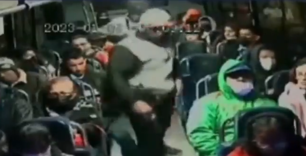 En el video se observa cómo en menos de un minuto, los dos hombres suben amenazando a los usuarios y colocándose en la entrada y salida del autobús para posteriormente despojarlos de carteras, celulares, mochilas y más objetos de valor.