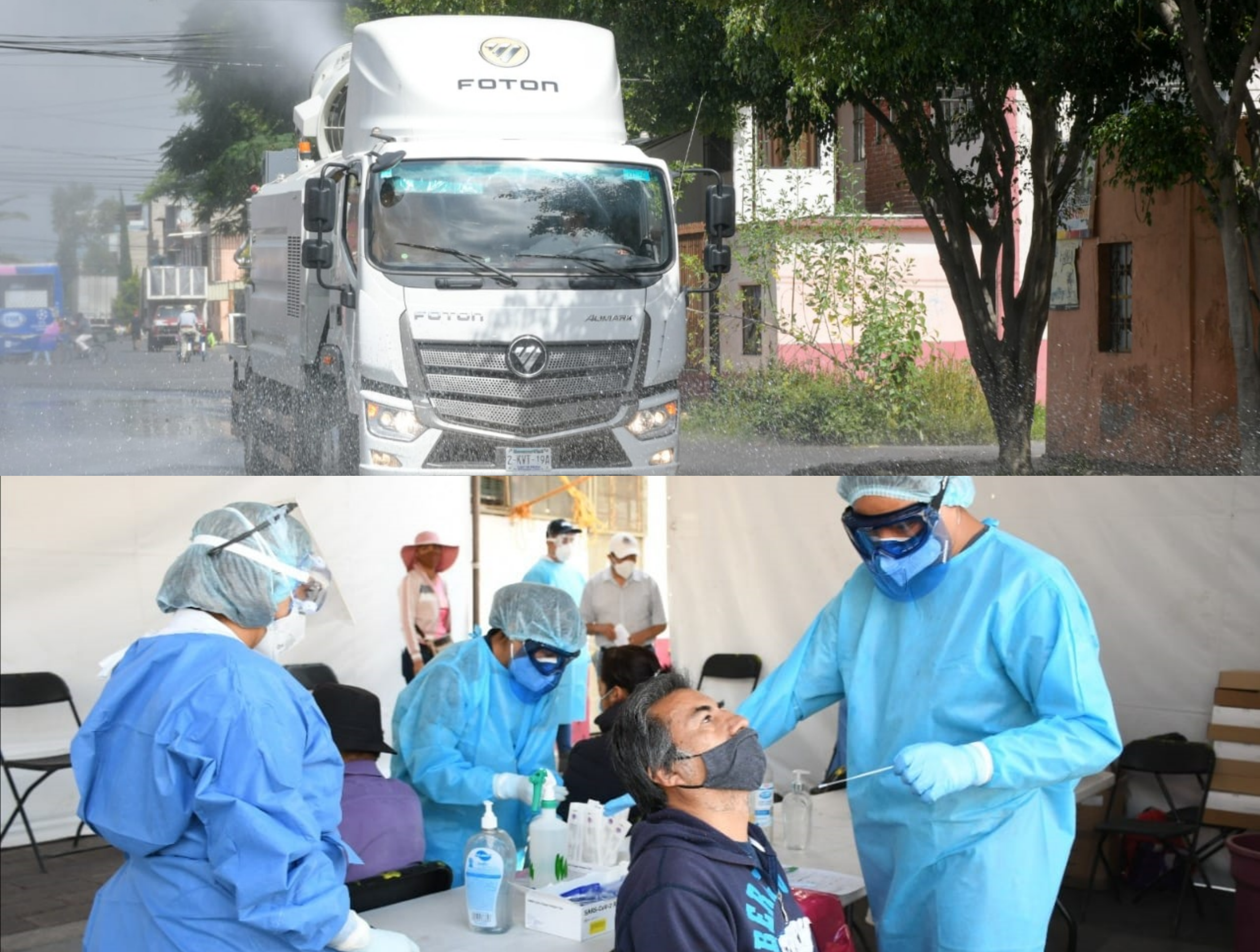 De la Rosa García puntualizó que será obligatorio el uso de cubrebocas en establecimientos comerciales, comercios en la vía pública, mercados, tianguis, entre otros, además de que se sanitizan permanentemente más de 150 espacios públicos, calles y avenidas principalmente.