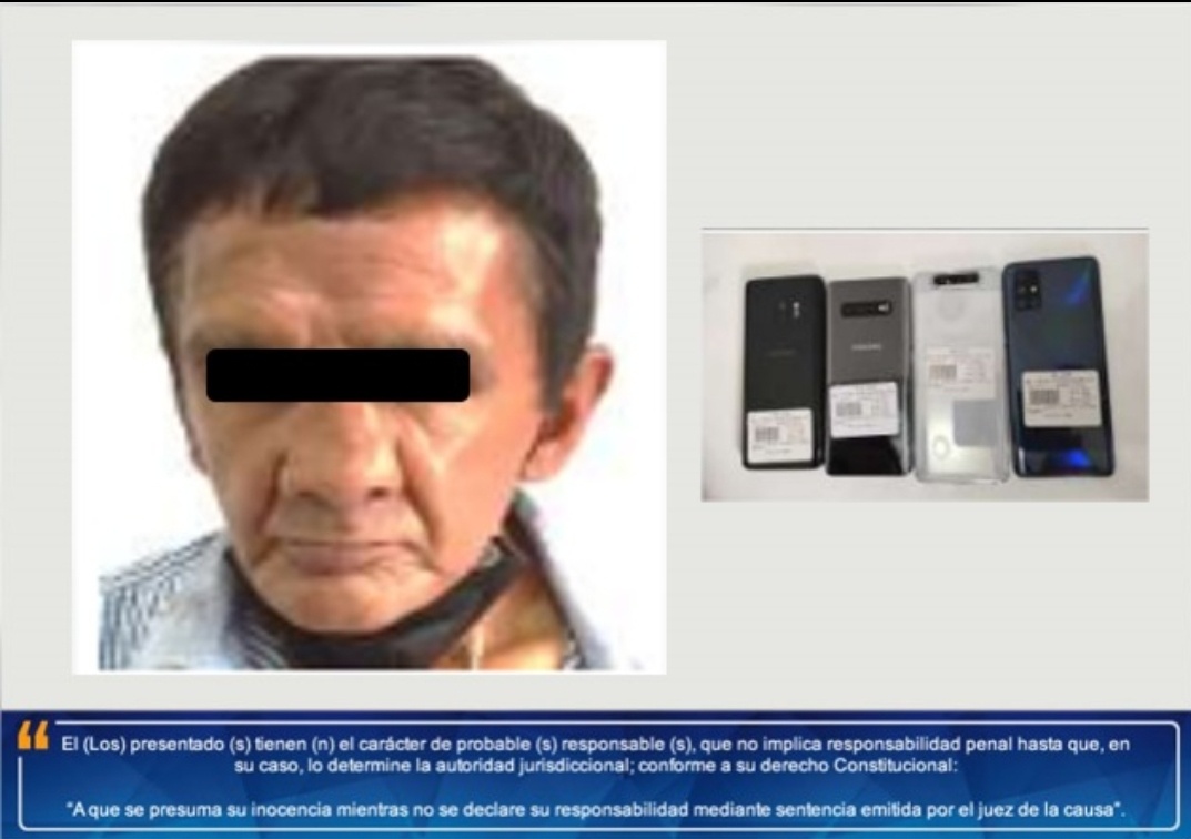 Oficiales que se encontraban realizando un patrullaje de rutina en la zona fueron alertados por la seguridad del mismo establecimiento y al arribar, encontraron al hombre a quien de inmediato aseguraron y tras realizarle una inspección preventiva se presume, le localizaron los equipos telefónicos.