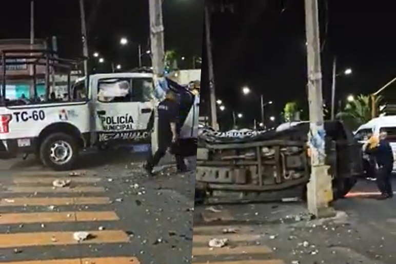 De acuerdo con reportes preliminares, la unidad policíaca que aparentemente viajaba a exceso de velocidad, se impactó contra una combi Nissan Urvan color blanco modelo 2021 con placas de circulación A00367 de la ruta 65 que viajaba por el lugar y luego terminó volcada.