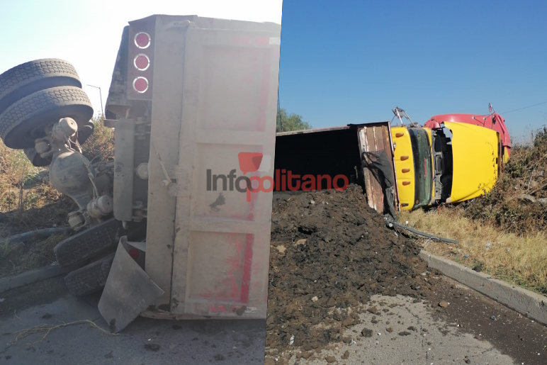NEZAHUALCÓYOTL (09 FEBRERO 2022). – La mañana de este miércoles un tráiler que viajaba cargado con tierra resultó volcado mientras circulaba por calles del municipio de Nezahualcóyotl.