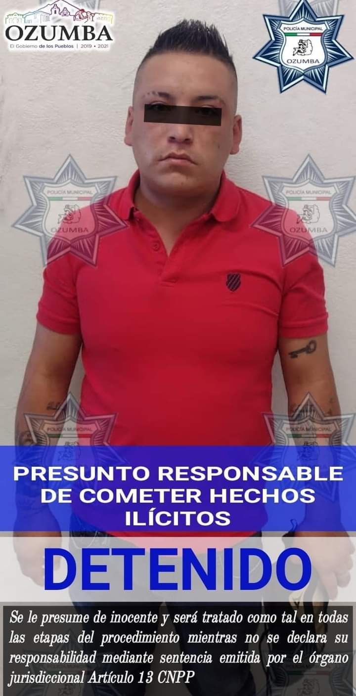 OZUMBA (10 AGOSTO 2021).- Luego de implementar un operativo, elementos de la Dirección de Seguridad Pública Municipal Ozumba, detuvieron a un hombre, por el presunto delito de posesión de enervantes.