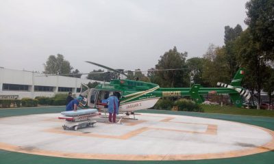 ECATEPEC (28 JUNIO 2022).- A bordo del helicóptero Jaguar 1 de la Dirección de Seguridad Pública y Tránsito de Ecatepec, paramédicos municipales trasladaron a un adulto de...
