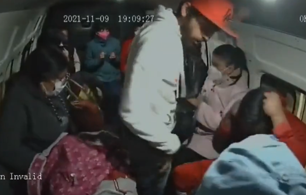 En imágenes difundidas mediante redes sociales, se observa el momento en el que dos sujetos abordan el vehículo y de inmediato amenazan a los pasajeros para que estos entreguen sus pertenencias, incluso, arrebatan chamarras de las víctimas.