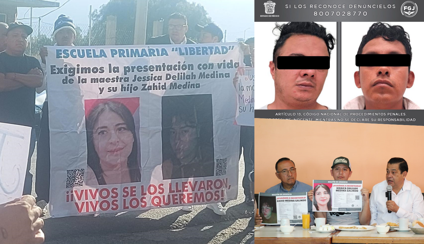 TEXCOCO (13 JUNIO 2023). – Dos ex policías estatales identificados como Miguel Ángel “N” y Edgar “N” son los detenidos y acusados de presuntamente estar relacionados con la desaparición de la maestra Jessica y su hijo Zahid Medina.