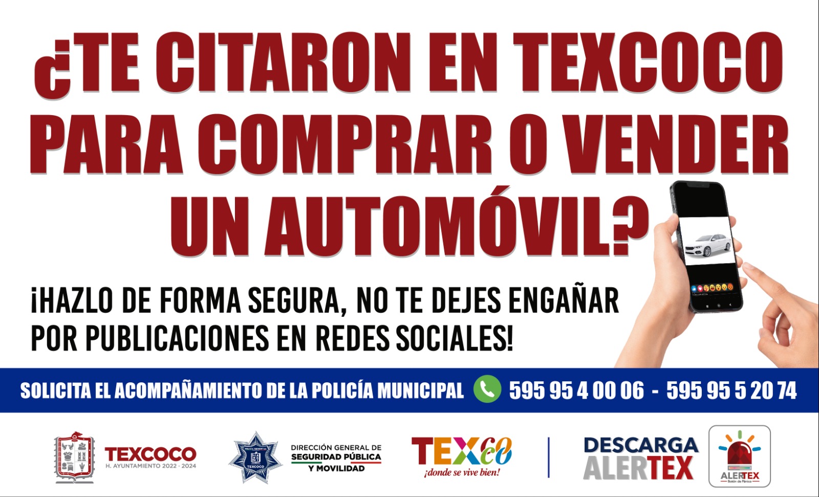TEXCOCO (13 JUNIO 2024).- Desde la dirección de Seguridad Pública y Movilidad de Texcoco se lanzó la alerta para que no se dejen sorprender por la venta de autos