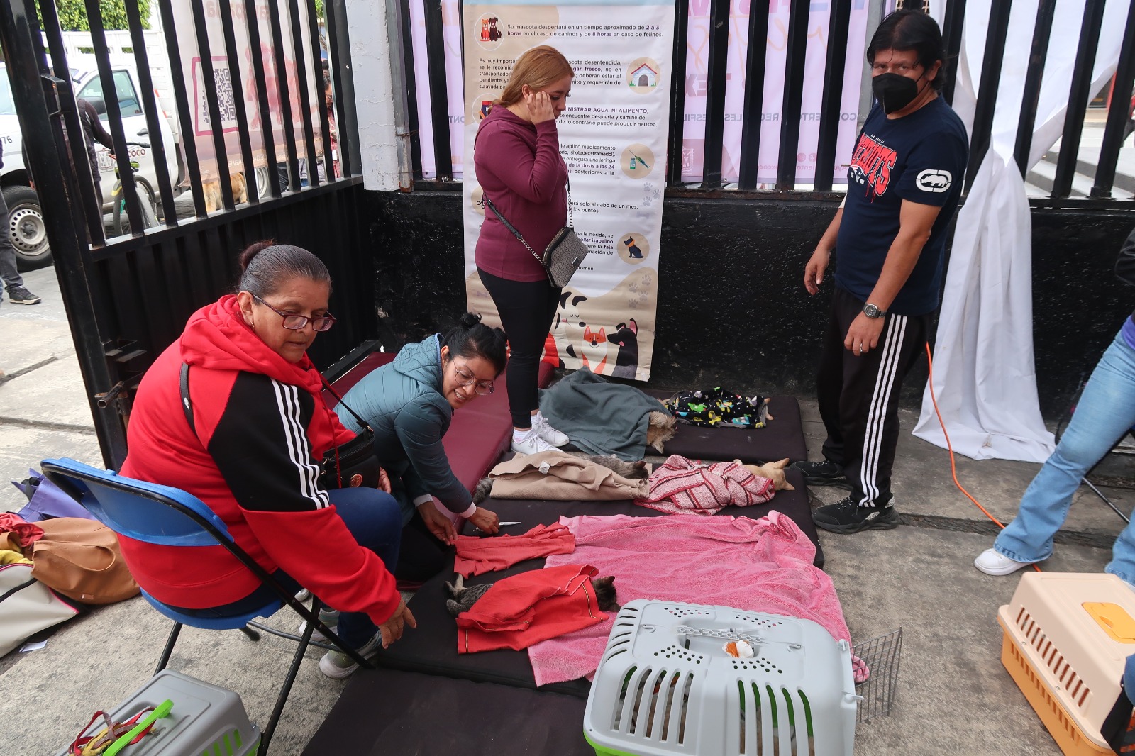 Este viernes desde temprana hora dueños de perritos o gatitos acudieron a esterilizar a sus mascotas al patio del palacio municipal de Texcoco a la caravana de la CEPANAF, en donde protectoras de animales aprovecharon para orientar a los dueños de mascotas sobre la importancia de la esterilización, sus cuidados y la integración al núcleo familiar.