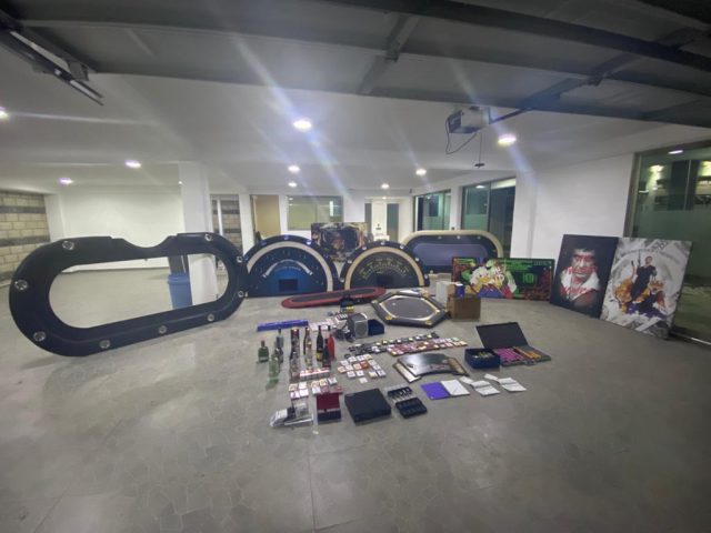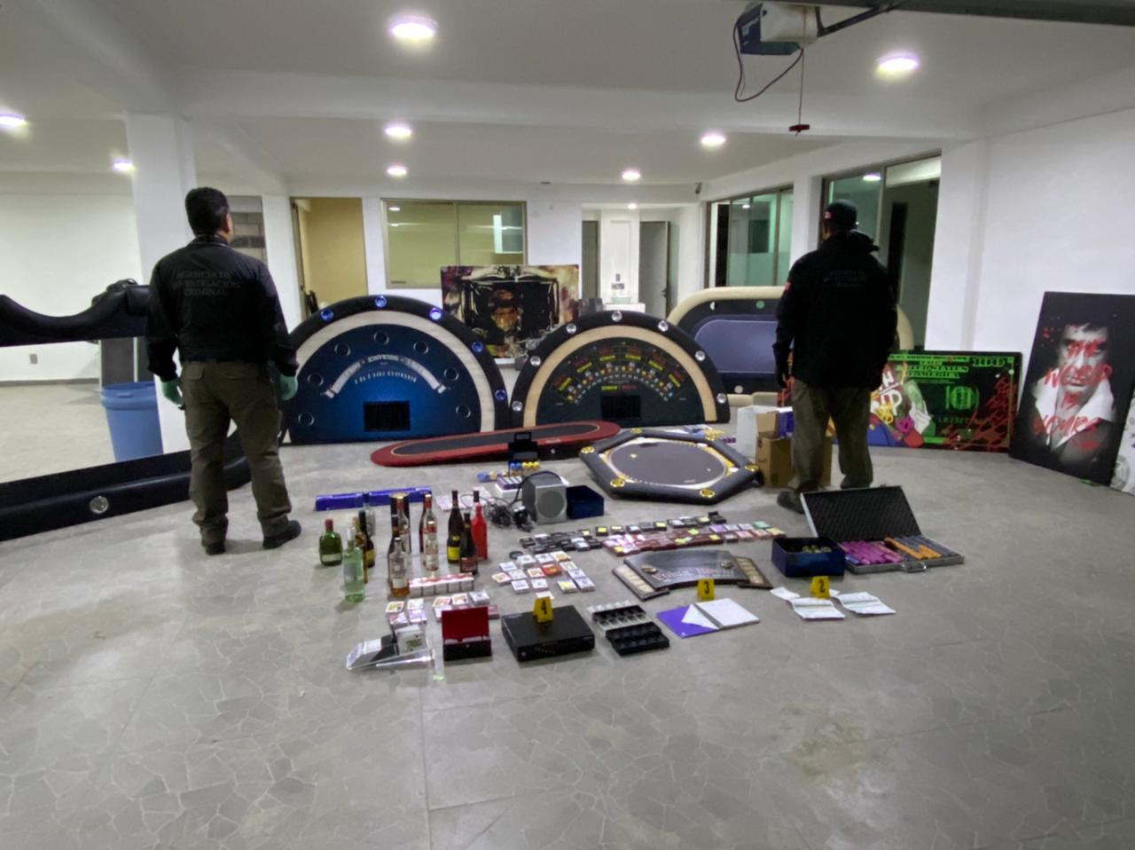 En el lugar aseguraron dos mil 514 fichas, 296 mazos de cartas, tarjetas de apuestas, porta fichas, dominós, botellas de bebidas alcohólicas, juegos de mesa y cajetillas de cigarros.