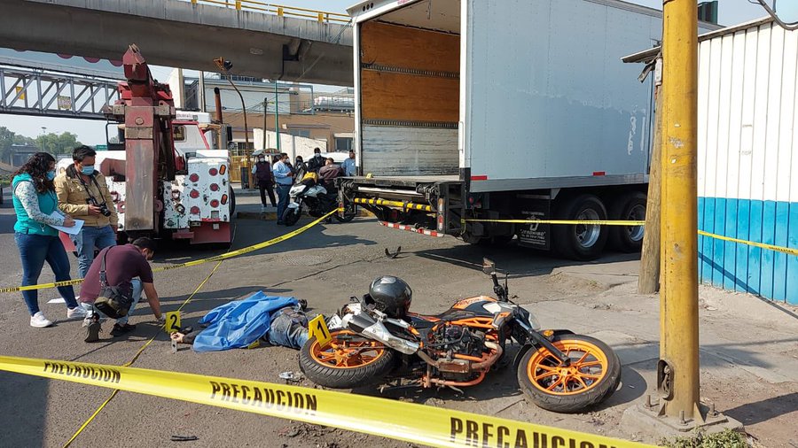 TULTITLÁN (21 ABRIL 2021). – Lamentablemente, un motociclista perdió la vida esta mañana luego de que se impactara contra la parte trasera de un camión mientras circulaban por la carretera Tlalnepantla-Cuautitlán.